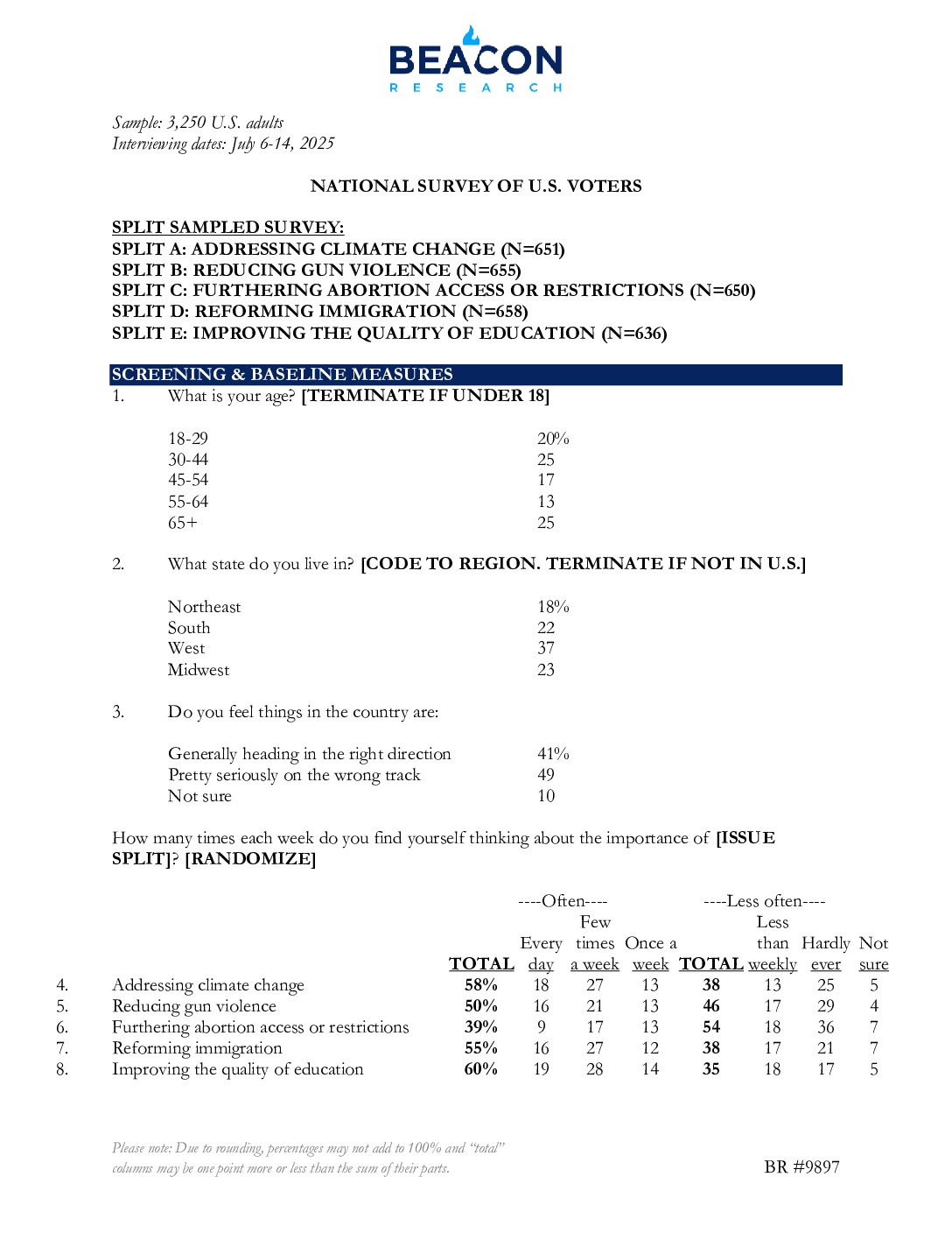 Environmental Voter Project – July 2025 Climate Change Issue Importance Topline