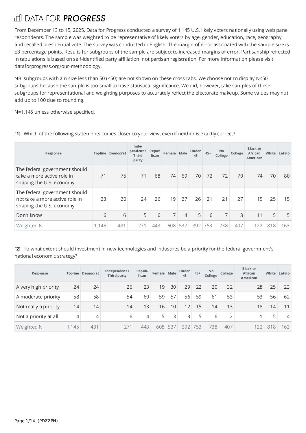 Data for Progress – Dec. 2025 Green Industrial Policy Crosstabs