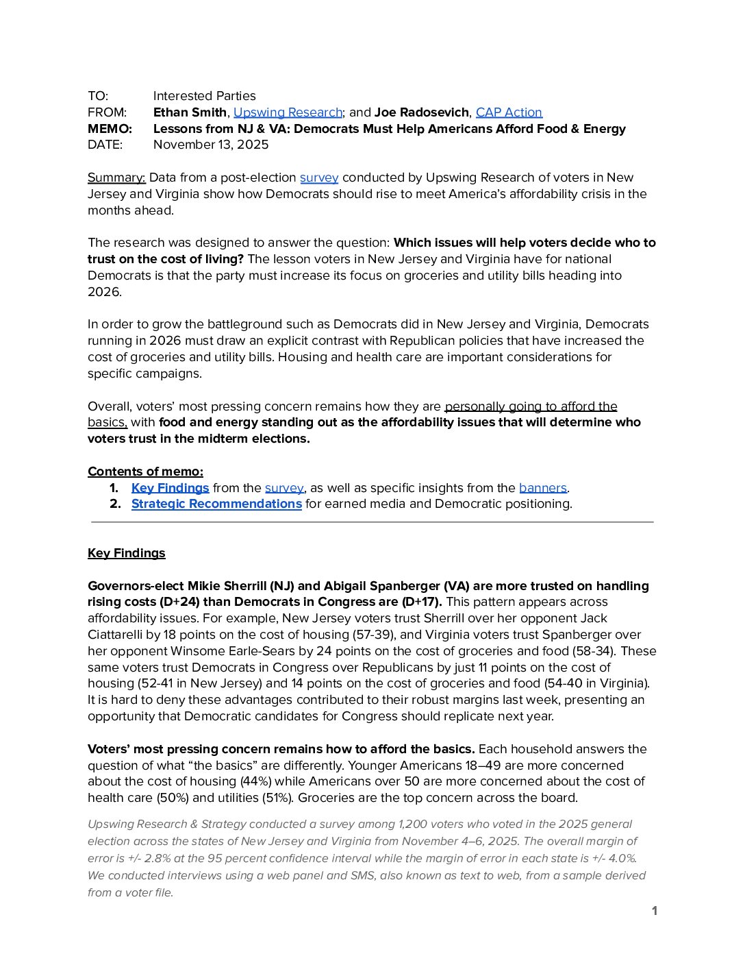 CAP Action – Nov. 2025 NJ & VA Post-Election Poll Memo